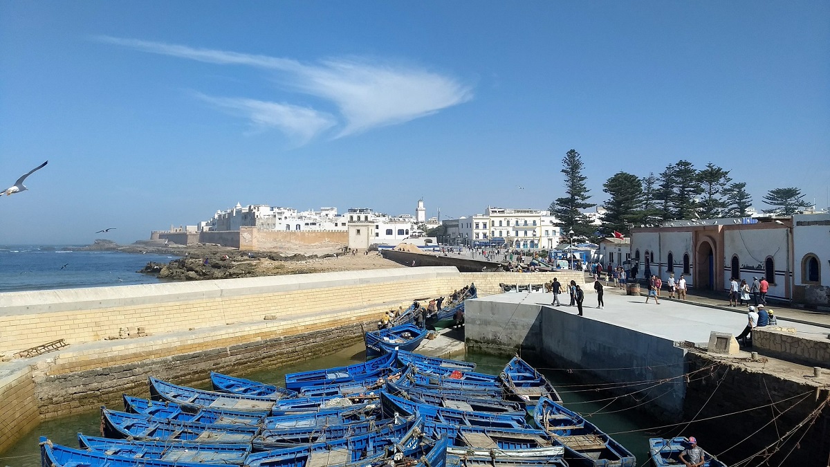 Des murs crénelés, le souffle des vents alizéens, des maisons aux façades blanches et bleues, de la couleur de l'écume et de l'onde, Essaouira, l'ancienne Mogador est la "Mariée de l'Atlantique". Elle est une de ces villes côtières où douceur de vivre et activités nautiques se complètent. On s'y promène tranquillement, à l'ombre de ses remparts, ceux là mêmes qui dessinent les contours d'Astapor, la ville rouge de la série "Game of Thrones".