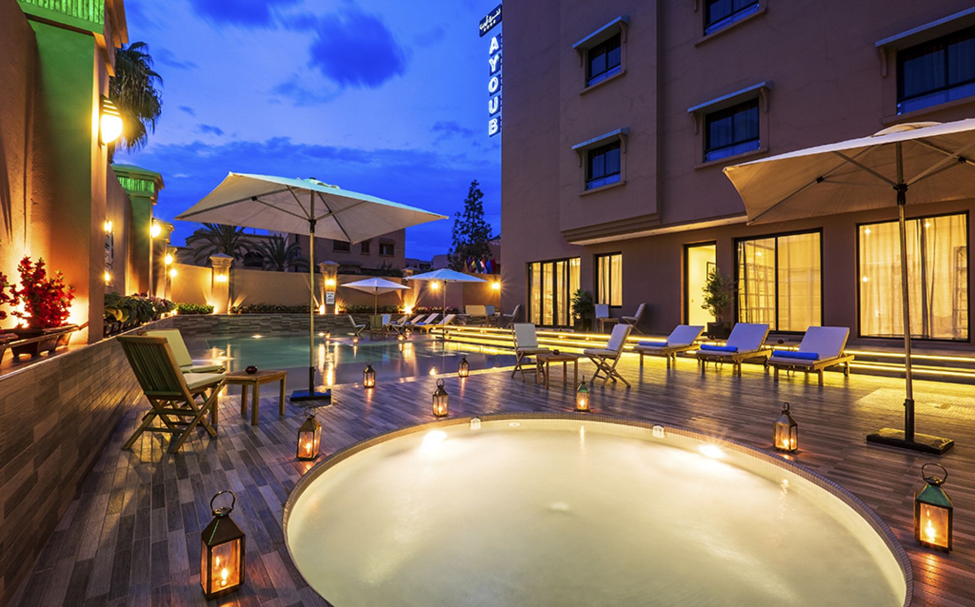 Découvrez l'Hôtel Ayoub & Spa, un hôtel 4 étoiles dans un emplacement stratégique, déjà très proche des principaux monuments célèbres de Marrakech, à seulement 1,4 km de la gare et à 2,6 km de Gueliz.